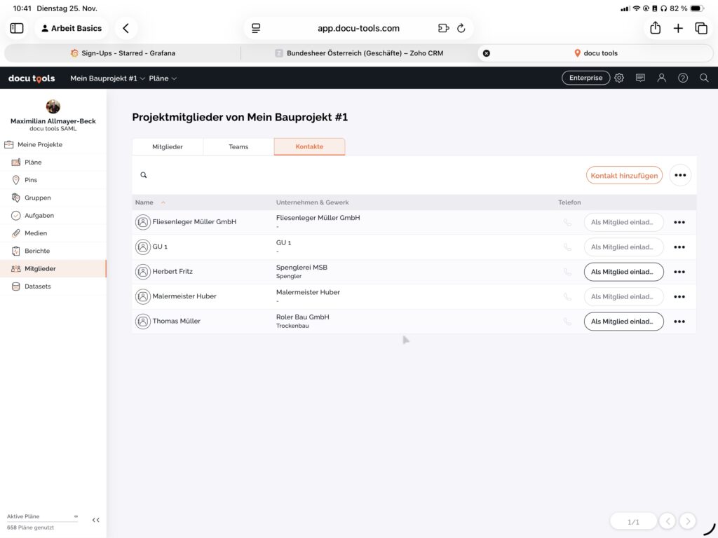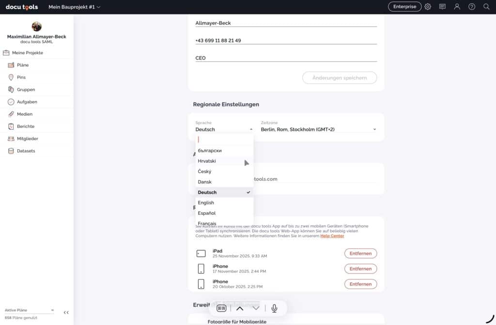 Probieren Sie es selbst aus: Ein Projekt aufzusetzen dauert in docu tools weniger als zehn Minuten – und danach können Sie sofort auf der Baustelle dokumentieren.